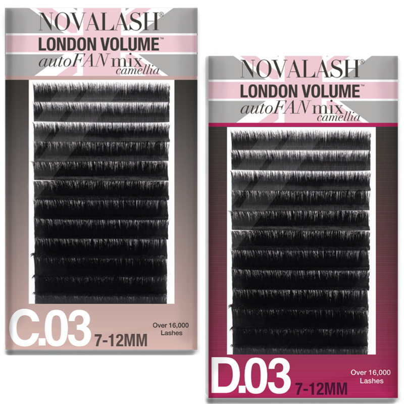 Reduce the application time of your volume lash sets with NovaLash’s London Volume autoFAN mix camelia extensions. This autoFAN technology makes it extremely easy to make up to 15D fans with the .03 extensions, up to 8D fans with the .05 extensions, and up to 6D with the .07 extensions. The camelia design creates customized looks with multiple lengths per fan. Each row includes three different lengths, giving your lashes a more natural look. Contains a substantial amount of extensions compared to other trays to create a fuller look and lash more clients. Designed to come off the strip easily without any adhesive residue. These unique lashes allow you to make exquisite fans in less time than traditional methods.